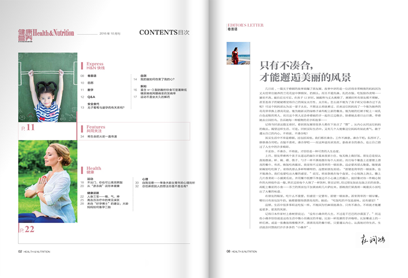 此外,该杂志还设有专栏文章,涵盖了健康明星、名医访谈、健康美食、健身达人等内容,为读者呈现丰富多彩的健康生活方式。不仅如此,该杂志还定期推出健康活动、健康讲座、健康展览等促进健康的活动,为读者提供更多参与和了解健康的机会。
